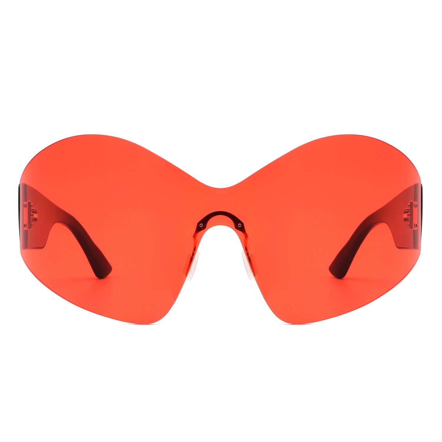 Electra - Oversized Rimless Wraparound Shield Sunglasses