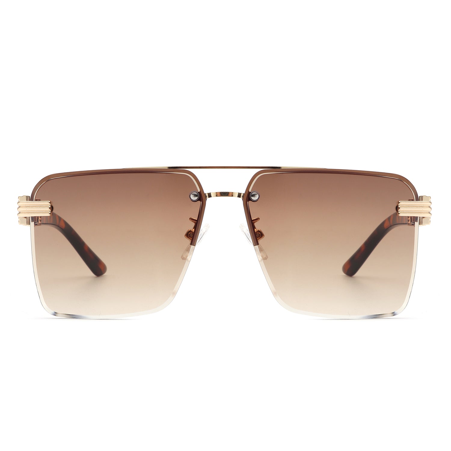 Elysian - Retro Square Rimless Brow-Bar Tinted Fashion Sunglasses