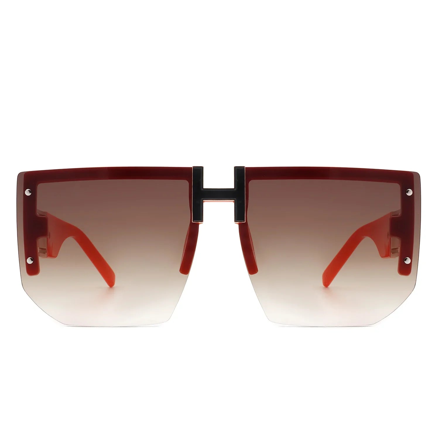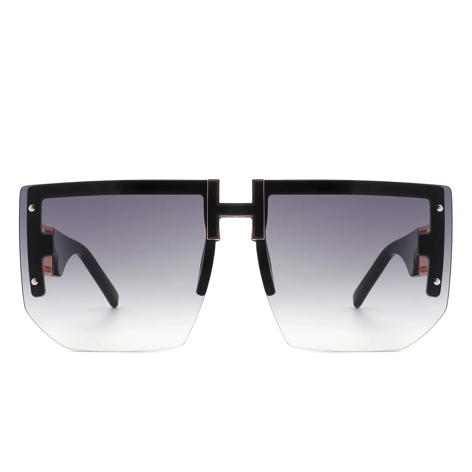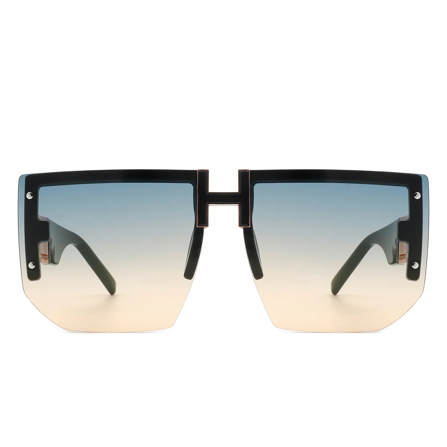 Kaelor - Square Oversized Flat Top Gradient Half Frame Sunglasses