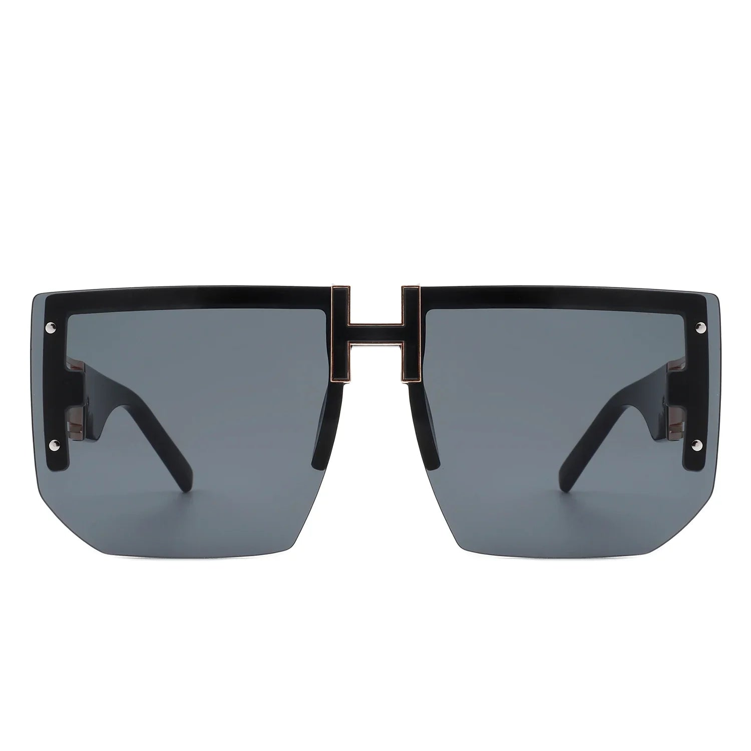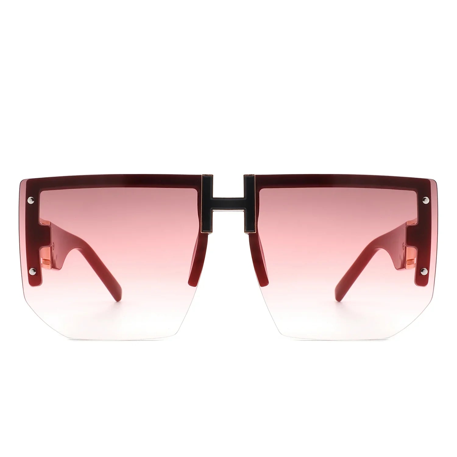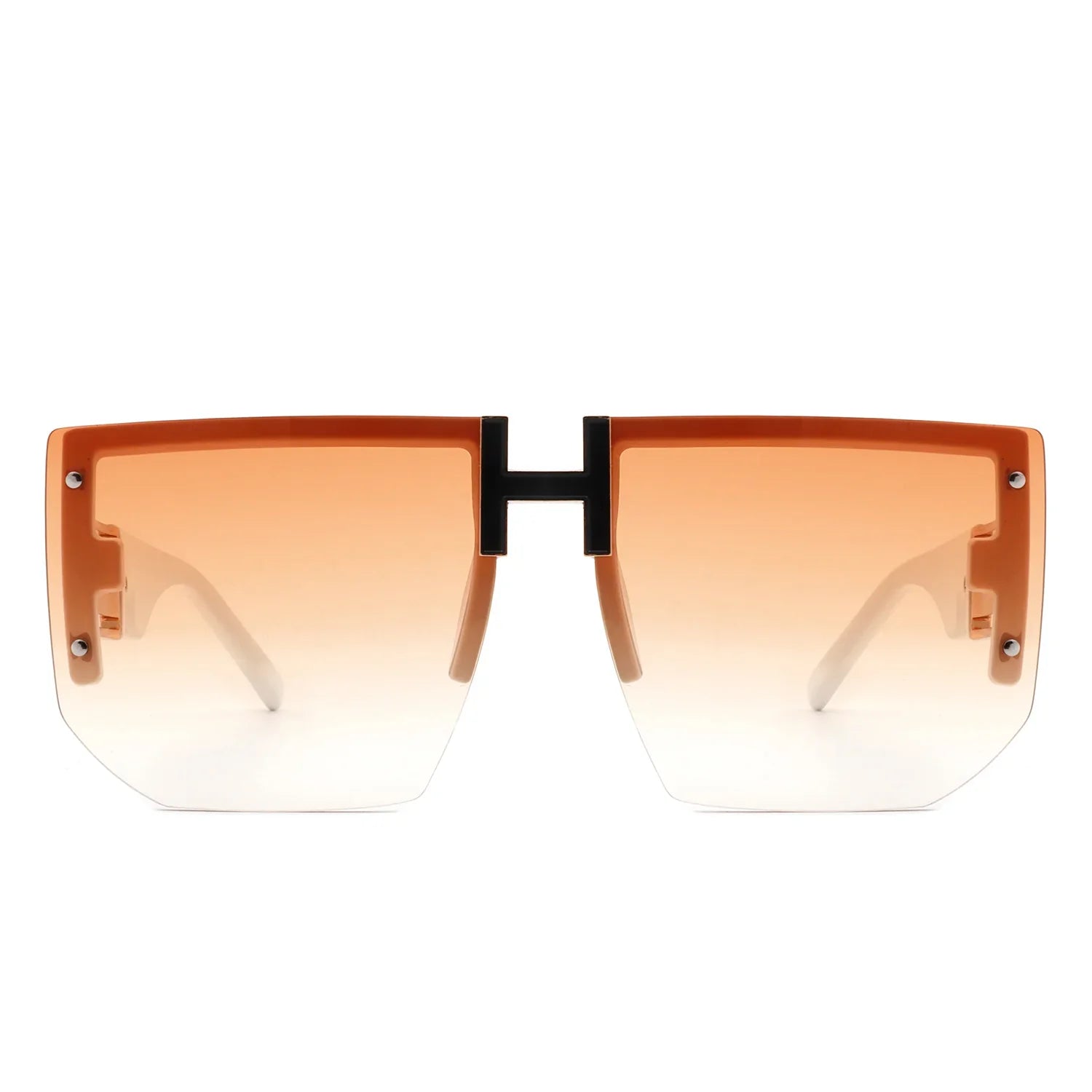 Kaelor - Square Oversized Flat Top Gradient Half Frame Sunglasses