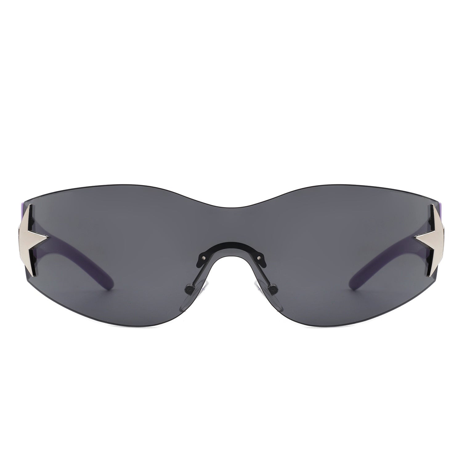 Elevate your active lifestyle with our rimless wrap-around sunglasses, featuring a distinctive star design for a unique style statement. These durable, polycarbonate-lensed shades offer full UV protection for all your outdoor adventures. They are presented in an elegant packaging box and include a microfiber cloth and pouch, ensuring effortless care and convenience. These sunglasses are the quintessential accessory for the athletic fashion-forward individual.