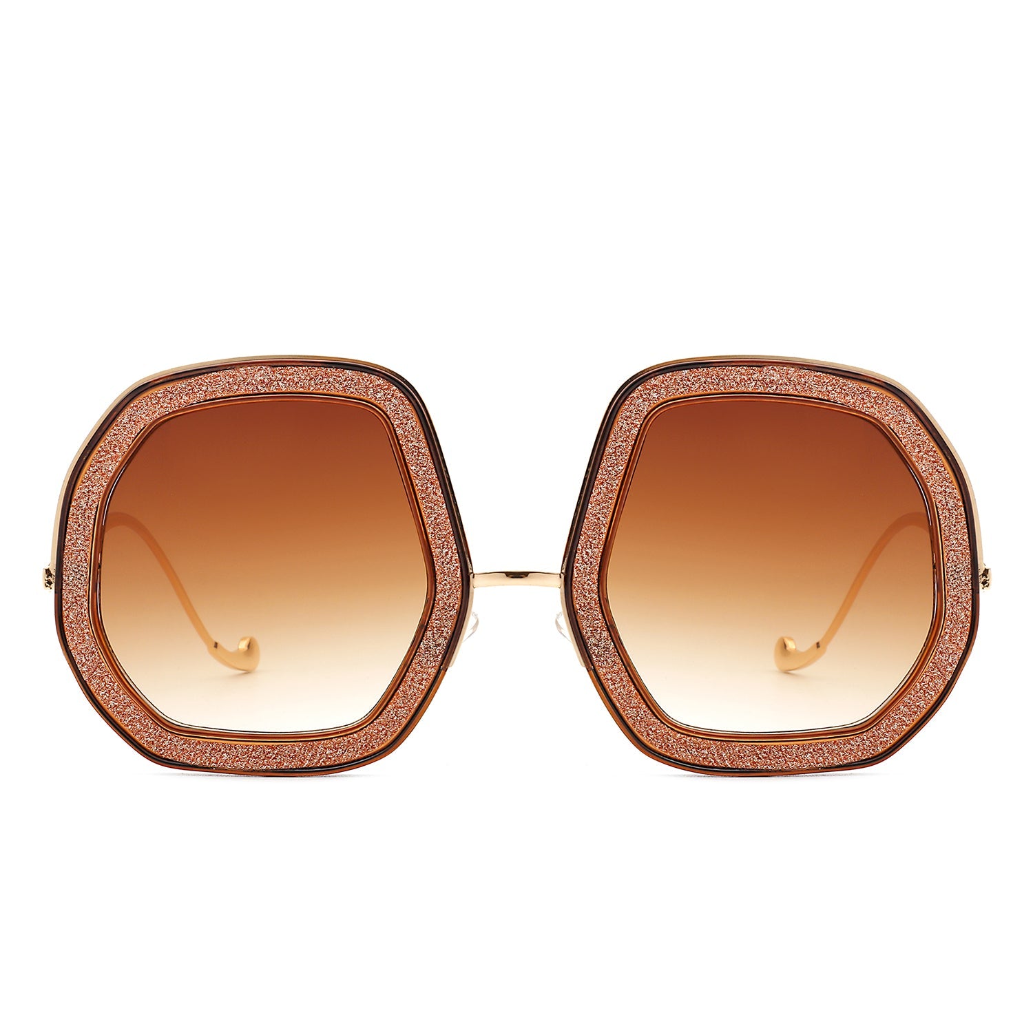 Xanadawn - Women Round Irregular Geometric Glitter Fashion Sunglasses